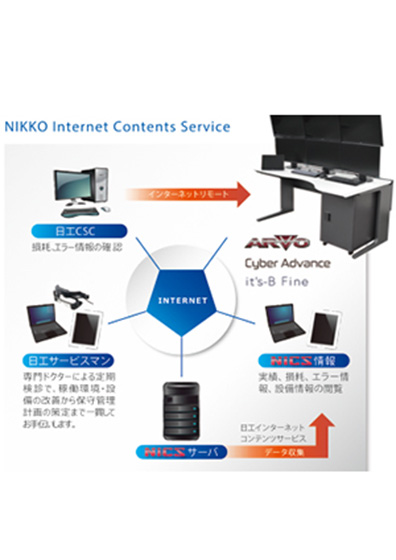 インターネットに接続できる日工製操作盤をお使いの方限定、別途リモートメンテナンス契約・操作盤専用インターネット回線が必要です。
