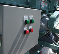 ライトフィーダ 軽量物搬送に最適なスーパーモジュラー コンベヤにホッパーが合体 コンパクトで軽く移動も簡単 標準化・仕様用途限定により低価格を実現 カタログダウンロード(PDF) 各部詳細 排出部(拡大) 動力制御盤(標準仕様) 移動脚(標準仕様) 外形図 仕様 形式 SM50RE20-3.0GU フレーム PL-t 2.3 ベルト 平ベルト 500巾-160N/mm×3.0×1.5 ベルト速度 20m/min 90Hz時 駆動(本体) ギアモータ (インバータ付)ニッセイ G3L40N80N-IPM150NT 1.5kW 6P 220V 駆動(解砕機) ハイポニック減速機 RNYM02-1330-AV-150 0.2kW 4P 220V ヘッドプーリ φ265 × 550 × φ60 テールプーリ φ165 × 550 × φ30 スナップローラ φ60 × 520 × φ15 キャリヤローラ φ60 × 550 × φ15 リターンローラ φ60 × 520 × φ15 能力 28m³/h( ≒3mmアンダー) 付属品 立上りガイド、外スカート ホッパ(1.5m³) キャスター脚、制御盤 塗装 上塗1回 U45-60D(日塗工) 納入実績 諸元表 ベルトコンベヤ スーパーモジュラー(500W) ホッパー容量(水切り) 移動棚・動力 付属品 移動脚・動力制御盤 オプション バイブレータ アーチングブレーカ 対象物(一例) 土・化学肥料・木くず・硬質プラの定量供給 F型フィーダ ベルト接触摩耗をなくしてベルト寿命を大幅に向上 骨材の噛み込みをなくすことでホコリ・粉塵の環境改善 骨材のこぼれを防ぎ、安定した供給量を実現 カタログダウンロード(PDF) ホッパと接触部無し 安全ガードで巻き込まれ防止非常停止スイッチワイヤー付き安全対策 直結式駆動で巻き込まれ防止 グリス給油孔で楽々メンテ F型フィーダ主要諸元表 能力 15t/h 30t/h 50t/h 80t/h 30t/h 50t/h 型式 FF-15V FF-30V FF-50V FF-80V FF-30R FF-50R 駆動 0.75kW 4P 1.5kW 4P 2.2kW 4P 3.7kW 4P 2.2kW 4P 3.7kW 4P 減速比 直交軸 1/120 ← ← ← ← ← ベルト幅 (mm) 450 ← 500 600 500 600 波桟高さ (mm) 80 ← ← ← ← ← ベルト速度 (50Hz) 12.8m/min ← ← ← ← ← ベルト速度 (60Hz) 15.5m/min ← ← ← ← ← ベルト長 4.37m/E ← ← 4.58m/E 5.70m/E ← 関連製品 コンベヤ・搬送システム モジュラーベルトコンベヤシリーズ ストリンガーモジュラーコンベヤ 急傾斜コンベヤシリーズ 水平傾斜コンベヤ 材料切り出し/簡易計量コンベヤ お問い合わせ内容について 当社の個人情報保護方針に同意の上、お問合せください。 必須 同意する お問い合わせの種類をお選びください。 必須 ご選択ください カタログ・資料請求 価格・仕様など説明希望 その他 お問い合わせ内容必須 ■お客様情報 メールアドレス 必須 会社名 必須 部署名 役職名 お名前(姓) 必須 お名前(名) 必須 〒 必須住所自動代入 都道府県 必須 市区郡 必須 住所(市区郡以降) 必須 電話番号 必須 FAX番号 お客様情報をブラウザに保存する 確認画面をスキップする 入力内容を確認