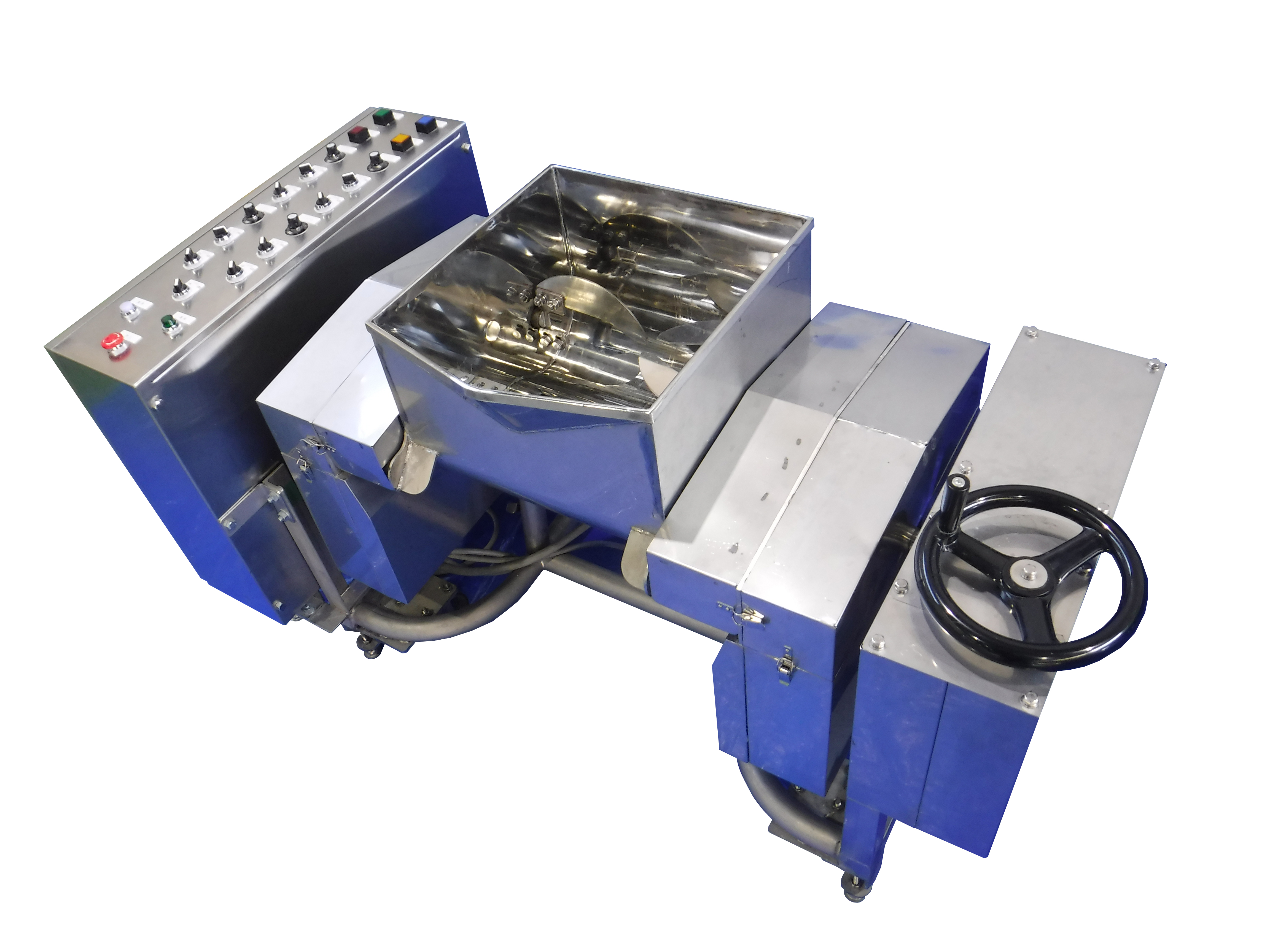 特徴 均一拡散から練り込みまで、異なるミキシングが1台のミキサで対応可能 粉体および、低粘性から高粘性物まで幅広いミキシングが可能な食品用ミキサです。1台で幅広いミキシング工程がカバーできるため、材料の投入・排出作業が軽減できます。さらに清掃性にも優れています。 ミキシング事例「小麦粉+水」 カタログダウンロード(PDF) 4軸独立制御駆動 独立した4台のモーターでパドルが回転します。パドルの回転数・回転方向それぞれの設定が可能です。 用途で選べるパドル 数種類のパドルをラインアップしました。パドルのオーダーメイドも承ります。 シャフトレスで清掃作業を軽減 シャフト(貫通軸)をなくしたことで、材料の付着が軽減しました。清掃器具も入れやすく、清掃作業時間が短縮できます。 シール部簡単分解・組立 シール部が簡単に分解できる構造のため、分解・組立に専用工具が不要。清掃も容易に行えます。 仕様 容量(満液) 50リットル 動力 0.4kWx4 AC200V 三相 回転数 インバータ可変速11.7~117min-1 寸法 D700×W1540×H930 ミキサ容量の大きな機種も製作いたします。 本仕様は予告なく変更になることがあります。 本仕様は予告なく変更になることがあります。 動画 関連情報 ミキサ DASH-Hyper C ダブルスパイラルフローミキサ(DSF) 一軸フリーモードミキサ 遊星タービンミキサ / タービンミキサ 傾胴ミキサ 食品用サニタリーミキサ くいっかー ECBミキサ(造粒ミキサ) GEO-TOM連続式ニ軸ミキサ モバイル型プラント(ONZEMIX) 自動計量式ミキシングユニットNeo 自走式土質改良機 MobixEco お問い合わせ内容について 当社の個人情報保護方針に同意の上、お問合せください。 必須 同意する お問い合わせの種類をお選びください。 必須 ご選択ください カタログ・資料請求 価格・仕様など説明希望 その他 お問い合わせ内容必須 ■お客様情報 メールアドレス 必須 会社名 必須 部署名 役職名 お名前(姓) 必須 お名前(名) 必須 〒 必須住所自動代入 都道府県 必須 市区郡 必須 住所(市区郡以降) 必須 電話番号 必須 FAX番号 お客様情報をブラウザに保存する 確認画面をスキップする 入力内容を確認