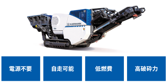コンクリート処分の現状:コンクリートガラの廃棄量が増大、処分が現場の大きな負担に コンクリート・リサイクルの促進に向けて:自動化で負荷と工数を削減する 日工の提案事例 自走式・省エネ設計の破砕機でコンクリート破砕を効率化 省スペースの小型ユニット式破砕機で現場での再生を支援 関連製品・サービス コンクリート処分の現状:コンクリートガラの廃棄量が増大、処分が現場の大きな負担に 最終処分場は20年以内に満杯と予測 環境省では以前から、建設現場で生じる廃コンクリート(コンクリートガラ)を含む建材3種を「特定建設資材」※1と定め、分別解体と再資源化を義務付けてきました。しかし近年、1960年代の高度経済成長期に整備された国内のビルや住宅、インフラ構造物などが一斉に耐久限界を迎えており、今後は建設廃棄物の量がさらに増えていくと言われています。さらには気候変動の影響もあり、台風などの大規模災害で一度に大量のがれき類が排出される事態も増えています。 このように処分すべき廃棄物量が増大する一方で、産業廃棄物の最終処分場は今後20年ほどで満杯になると試算※2されています。こうした事態に対処するためにも、建設廃棄物のリサイクル促進が急務となっています。 特定建設資材 コンクリート塊(プレキャスト板等を含む) アスファルト・コンクリート塊 建設発生木材(伐木材などを含む) ※1「建設工事に係る資材の再資源化等に関する法(建設リサイクル法)」による ※2 環境省「令和4年版環境白書・循環型社会白書・生物多様性白書」https://www.env.go.jp/policy/hakusyo/r04/pdf.html コンクリートガラは9割がリサイクルも、現場の負荷は増大 がれき類のなかでもコンクリートはリサイクルが定着しており、環境省の調査では99%以上が、再生砕石あるいは再生骨材として再生されています※。一方で、排出されるコンクリートガラの絶対量が増え続けるなか、対応する現場の建設会社や中間処理業者の負担は増加しています。人材不足や高齢化の傾向も相まって、効率化や工数削減につながる技術改革などがますます求められるようになりました。 廃コンクリート(コンクリートガラ)の主な再生先 再生砕石 道路舗装工事向けの路盤材、他の工事での埋め戻し材などに使用する 再生骨材 新しいコンクリートやアスファルトの材料として混ぜ込む。再生砕石として使用する場合よりも細かな粉砕が必要となる ※ 環境省「建設廃棄物の現状」 https://www.env.go.jp/content/000143784.pdf コンクリートのリサイクル促進:自動化で負荷と工数を削減する たとえば、コンクリートガラを再生砕石とする場合、建設現場で発生するコンクリートガラを破砕し、路盤材に使用できるサイズ(RC40:40mm以下)としたあと、そのまま現場で再利用するか、再生砕石工場に移送します。この場合、破砕や輸送にかかる工数を削減していくことで、全体の手間やコストを削減できます。また、破砕機自体の燃費向上なども、環境負荷や生産コストの低減につながります。 廃コンクリート(コンクリートガラ)の再生利用プロセスの効率化 工場に移送して破砕処理すると、輸送の手間やコストが生じる 破砕機での負荷削減のポイント 日工では建設現場に移送しやすい自走式の破砕機の提供などを通じて、がれき類のリサイクルの効率化とコスト削減を支援しています。 日工の対応範囲 日工の提案事例(1) 自走式・省エネ設計の破砕機でコンクリート破砕を効率化 (KLEEMANN社製自走式破砕機の導入提案) ポイント 現場で設置・移動が容易な自走式破砕機 高性能の破砕機構で、効率の良い破砕が可能 動力源はエンジンのみ、電源供給不要 破砕機とエンジンの直接駆動で低燃費を実現 破砕機(クラッシャー)やその周辺機器の設置には通常、広いスペースが必要です。また運転電源の確保も必須であり、大きな電力を使用することも作業現場での負担となっています。これらの点は、建設現場でコンクリートガラをリサイクルする際にも課題となっています。 日工ではこうした現場向けに、世界的な破砕機メーカーであるドイツ・KLEEMANN社の自走式破砕機を提供しています。本品は現地に電源がなくとも使用でき、一般的なエンジン駆動タイプの破砕機よりエネルギー効率が高いことも特徴です。粒度選別に用いる自走式スクリーンをラインアップしており、コンクリートガラの破砕・再生にかける手間・コストの最小化に貢献します。 日工の提案事例(2) 省スペースの小型ユニット式破砕機で現場での再生を支援 (小型ユニット式破砕機「チョイ割るのジョー」の導入提案) ポイント 普通乗用車のスペースで設置できる小型破砕機ユニット 細粒度の破砕に対応(排出口の最小間隙約5mm) 投入・排出コンベヤを搭載したオールインワンモデル 日工では、省スペース設計で設置・移設が容易な小型ユニット式破砕機も提案しています(破砕機は関連会社の前川工業所製を採用)。 廃コンクリートだけでなく、セラミック、合金、鉱石などにも対応可